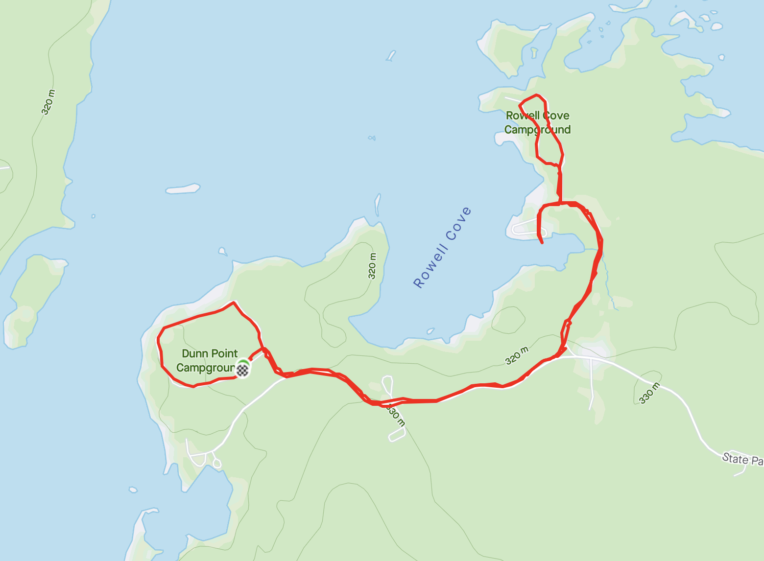 After a Friday morning breakfast of homemade (at home, not while camping) blueberry muffins and coffee, we headed down to the beach area. We had hoped to packraft on the lake, but the wind made us rethink our plans. We sat by the water for a bit (until my goosebumps got the best of me and I returned up to the campsite). We decided to take a walk from our side of the campground to the other to check out the sites. The walk from our area (Dunn Point) to the other side (Rowell Cove) and back was a little more than 3.5 miles (3.65, to be exact). I’m not sure if we have a favorite “side” of the park, as both featured some pretty great sites, some of which are waterfront. While there are no RV hookups at Lily Bay, there is a dump station.